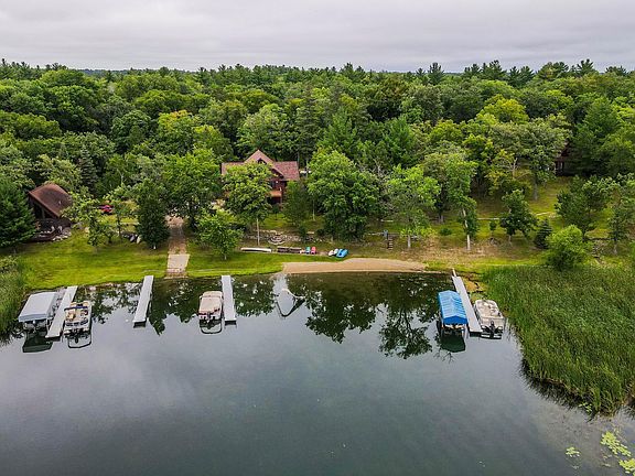 The cabin features half-log siding, a warm and welcoming great room with soaring vaulted ceilings, a main floor bedroom, and a loft bedroom for guests or family. Step out onto the large lakeside deck to take in the gorgeous views of Second Crow Wing Lake, part of the Eleven Crow Wing chain celebrated for excellent fishing and recreation.