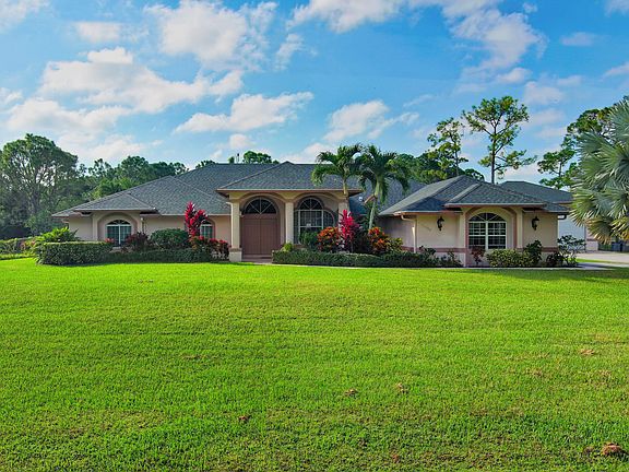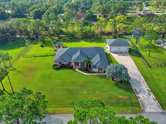 DON'T MISS THIS incredible property! With its new roof, gutters, a 2 story detached garage with a mechanical lift, and a high, irrigated lot, it's a dream home waiting for you to make it perfect. The spacious layout of 3500 square feet under air with 2 air conditioners; includes four bedrooms plus a den/office, 3 1/2 baths and great common areas make it perfect for both relaxation and entertaining. Tile and hardwood flooring throughout. Large tiled and screened lanai. Room to add a pool. Plus, the proximity to Palm Beach Gardens and the new Town Center being built now adds even more appeal. It's an excellent opportunity for anyone looking for a beautiful home, land and detached garage in The Acreage.