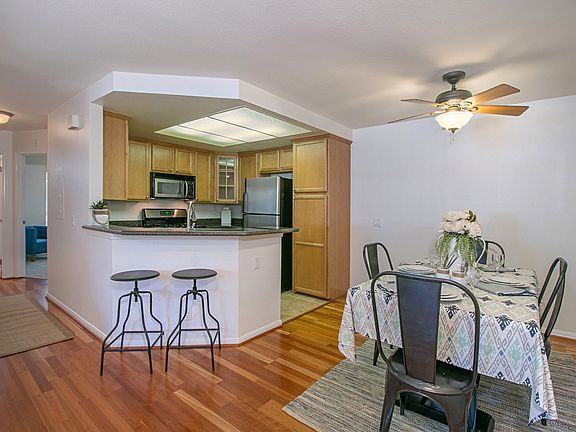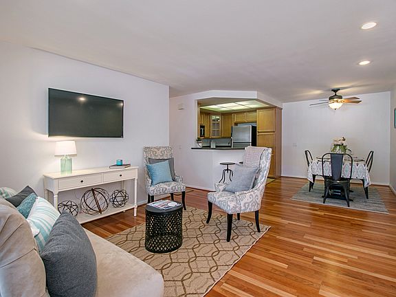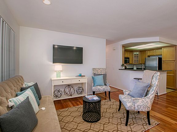 Fabulous location. Walk to school, parks, shops & restaurants. This updated 2/2 condo is freshly painted, new carpet in the bedrooms, granite counters in kitchen with SS appliances. Laminate style wood in living room/dining/kitchen areas. Washer/dryer in unit. Assigned parking and plenty of guest spots available. Complex has tennis, pool/spa & fitness center. Quiet end unit with great natural light. Perfect for a starter home or great rental income as an investment property.