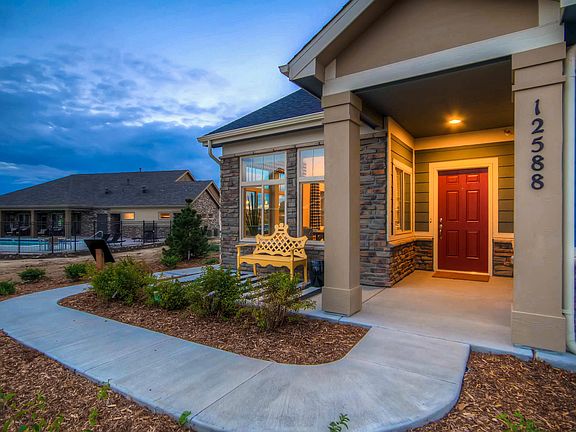 Former Model Home Now Available! Upgrades throughout including: Granite Countertops, Hardwood Floors, Vaulted Ceiling and Maple Cabinets. This low-maintenance Bravo floor plan will give you the ability to step away from tedious and time-consuming yard work. Spend your time doing what you enjoy; you are only a short walk away from the beautiful Eastlake Reservoir, and just down the street from a private Community Clubhouse with an outdoor pool. This zero step ranch offers everything you will need on one level, including an open floor plan containing a kitchen and great room perfect for entertaining. Also included in this home are custom blinds, washer/dryer, kitchen refrigerator and great room curtains.
