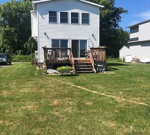Create lasting memories in this furnished summer house on the lake. Large open living room/dining room with fireplace & triple sliding glass door which leads to deck. Breakwall built 2019 with stone steps for water access. Roof: 8-9 years. Some replacement windows. 2 X 6 construction.