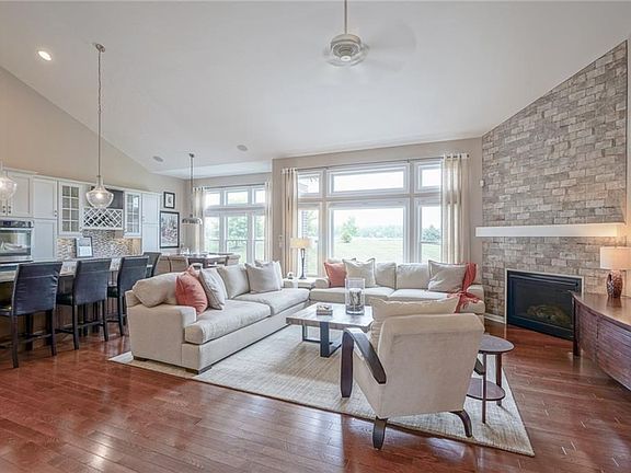 Custom details fill this GORGEOUS light-filled home - shows like a model! An entertainer's dream, the bright & open gourmet KT w/ oversized island & GR featuring a floor-to-ceiling custom tile FP boast a vaulted 2-story ceiling. Luxurious main-level Master suite features a custom bath layout w/ large tiled shower, and his/her vanities. Lovely den off foyer hall provides a perfect home office. Two large beds ups each w/private bath + loft w/ dry bar w/ mini-fridge - a perfect guest retreat! Full unfin bsmt allows room to grow w/ 9' ceilings, full bath & wet bar R/I & windows. 4' Garage extension, patio w/private yard & irrigation. Located on cul-de-sac in desirable Thorpe Creek with lots of community amenities. CHOICE Warranty Included!