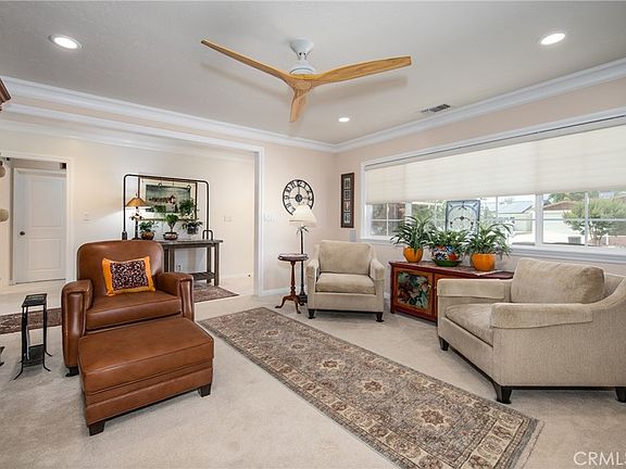 Welcome to this meticulously maintained 2 bedroom, 2 bath with a versatile den located in the heart of Calimesa! A few highlights include a beautiful galley kitchen with Subzero refrigerator and double oven, newer windows and a spacious Livingroom with fireplace. Laundry room is located inside the home. Outside, a serene oasis awaits with a fountain, rosebushes and fruit trees, offering the perfect escape.