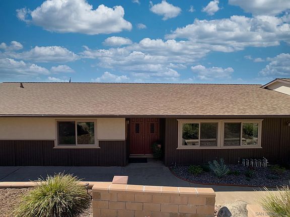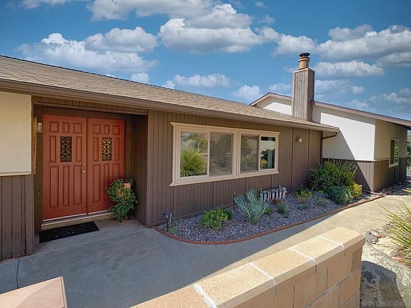 Perched at the end of a private cul-de-sac, this cherished single story home of 45+ years offers breathtaking panoramic mountain, valley, and sunset views. Featuring a newer roof, 26-panel solar system, updated HVAC, and a resort-style pool, spa and newer heater. The spacious 4-bed, 2-bath layout boasts a stunning rock fireplace in the living room. The kitchen boasts oak cabinetry, granite tile counters and backsplash with decorative inlay, a double sided steel sink, electric appliances and views. A three-car garage completes this serene retreat—your perfect elevated escape within the lower foothills of San Diego County.