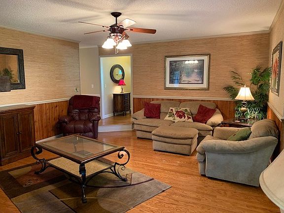 Awesome 3BR, 2BA spacious home on a large golf course lot w/ nice insulated metal building in the back yard. This updated home comes furnished & features; hardwood & tile floors; family rm. w/ brick fireplace & gas logs, pine wainscoting & chair rail; large sunrm. w/ wood floor & vaulted ceiling; Master BR w/ tile bathroom floor & shower; guest rm. w/ built-ins & 2 closets; fenced backyard & more!