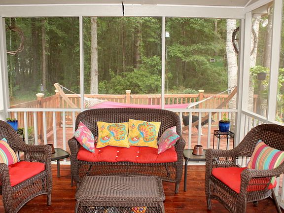 Brickyard Plantation under $400,000! Couple that with an incredible floor plan on a 0.58 acre cul-de-sac lot that backs to woods and a pond and you have a rare find! Enter the front door to be welcomed by a two story sunken family room complete with hardwood floors, gas log fireplace, and surround sound. Joining the Family Room to the Kitchen is a Formal Dining Room. The Kitchen has ample cabinets and counter space plus a large eat-in area and TWO pantries. Off the eat-in area is a screened porch which leads to a large deck overlooking a private backyard surrounded by woods and a pond. The Master Bedroom is located downstairs and features a tray ceiling, walk-in closet, and door to the screened porch. The master bath boasts dual sinks, sit-down vanity, two person jacuzzi tub and separate shower. Upstairs is a spacious landing area with built-in bookcase. Three bedrooms and a full bath are located upstairs. The FROG which is the 4th bedroom has a huge closet large enough for a small office. This is a very unique floor plan. Brickyard is one of the few neighborhoods in Mt. Pleasant which has a boat landing and boat storage. The neighborhood also features a club house, pool, tennis courts, walking trails, basketball court, fitness center and play park. Brickyard Plantation is surrounded by award winning schools, restaurants, shopping, medical facilities, and close to beaches. This home had a new roof in 2013, new windows in the last couple years, and will have the exterior painted and the deck restained in the next week or so.