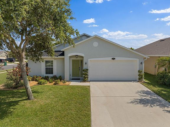 THIS PRISTINE HOME IS MOVE IN READY! Must see this very well maintained home with a new roof, gutters, solar (reduces electric bill by 50 percent. The average is $125 per month) HVAC replaced in 2023, new appliances, freshly painted interior and exterior, privacy fenced yard, new landscaping and landscape lighting and more. Located in a nice, well maintained community that has a low HOA and is close to all to major shopping, restaurants, quick access to I95 and Melbourne International Airport. Room sizes approximate and subject to error.
