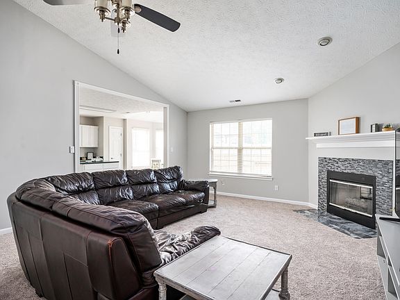 Nice 4 bedroom 2 bath ranch style home with great curb appeal in Glen Oak Commons! Home features open floorplan with split bedroom layout. Home features nice tiled entry, spacious great room with vaulted ceilings and gas/log fireplace. Kitchen is open to great room and features center island, pantry, and breakfast area and new luxury vinyl plank flooring. The large master bedroom offers private bath and large walk-in closet. Backyard is privacy fenced with wood deck (great for entertaining) and storage barn. Finished two car attached garage. Recent updates include all new paint throughout, new carpet in great room and bedrooms. New luxury vinyl plank in kitchen.