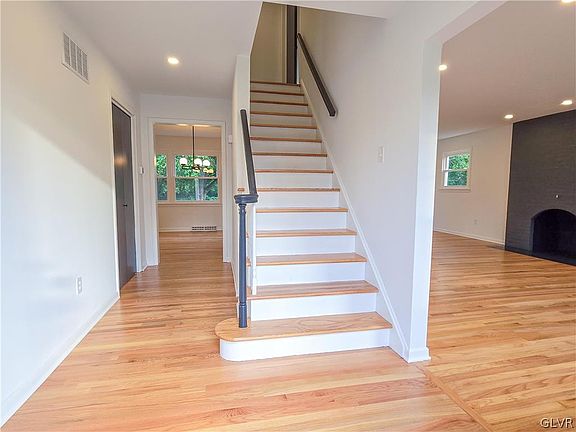 East Penn colonial tastefully remodeled. Just in time for the new school year! This home sits on a nice sized lot in Shepherd Hills. Set back off the green of hole two, directly on the golf course. Exterior, is designed with a modern yet homey feel with contrast between white siding and black windows. Entering through the foyer you will be greeted by natural hardwood flooring and recessed lighting that continues throughout the house. Off to your right, is your large living area with a wood burning fireplace. It is great to entertain or lounge with family or friends. Heading into the dining area, you have views of the golf course and it is open to the kitchen. The kitchen has new soft close cabinets, new appliances, and exotic quartz counters with an island that is open to the family room. The family room boasts a huge wood burning fireplace that can set the perfect mood for romance and ambiance. Also, there is a first floor bedroom that would be great for guest, older family members or a teen that wants privacy from the rest. Sitting directly next to the powder room which is tastefully designed. Heading up stairs is the main bathroom that has two vanities and is tiled with simplicity and taste. Sitting aside are two nicely sized bedrooms both with ample closet space, the front features a walk in. The primary bedroom features another wood burning fire place, a nice sized walk in closet and bathroom that will not disappoint. The new HVAC systems have two separate zones.