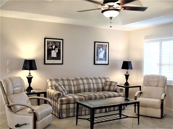 Well maintained clean home. Just bring your suitcase! This home offers a private setting with attractive yard and back screened in lanai, looking over fenced back yard. As you enter your screened in front entryway, you enter into large living room adorned with coffer ceilings. Ceramic tile laid on diagonal throughout the living spaces of the home. Living room leads to dining area with beautiful circular tray ceiling for that upscale feeling. Spacious kitchen with LED lighting and granite counter tops offers plenty of work space for the cook. Split plan bedrooms. Master bedroom is a generous size with his and her closets. Master bath has large walk in shower. Exterior door in bath to exit to back lanai. Plantation shutters for window treatment. Ceiling fans. State of the art water system, new submersible pump switch and seal, roof 2006, electrical panel 2006. Ask agent for list of personal items to covey. X Flood zone is awesome! One mile from Shamrock Park for tennis, playground, trails and entry to the Heritage Trail that joins with The Legacy Trail for walking and biking. With paid Voluntary HOA, get key to private boat ramp and/or private ferry to private beach. Public beaches less than 15 minute drive away.