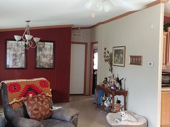 Peace and quiet is what you will find here! Very large 2008 manufactured home on permanent foundation with 3.59 acres of unrestricted land. This home has 5 bedrooms and 2 baths with large kitchen with island and family room combo plus separate dining room and living room. Large master bedroom with walk in closet and large bath with garden tub and separate shower. Propane fireplace in family room and storage shed outside. Metal roof only 2 years old. Road is a dead end and land has endless possibilities.