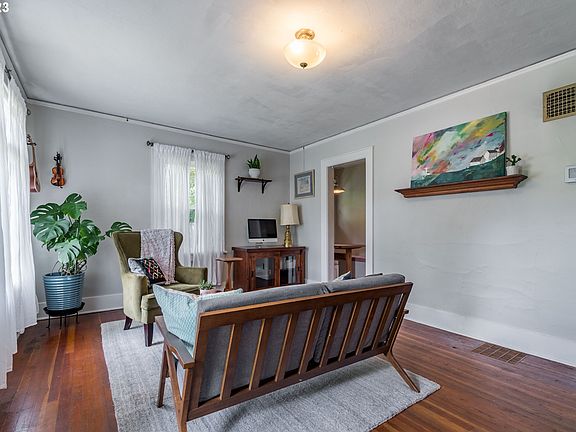 Imagine coming home to this lovingly restored & remodeled Westside Bungalow! Features all the modern amenities while still retaining the character that epitomizes the classic 1920's homes like wood floors, picture railing and wide plank baseboards throughout. Fully remodeled kitchen with quartz counters, stainless appliances, elegant gold hardware and sweet built-in banquette seating area with storage. Two generously sized bedrooms plus charm-filled, updated bathroom with clawfoot tub, gleaming penny tile and wainscoting. Super convenient mudroom with exterior door to private backyard oasis with covered deck, multiple entertaining areas, lush landscaping and foliage. Designed by a landscape architect, the sunny-fenced front yard is easy maintenance, drought tolerant and filled with grasses and shrubs for privacy, flowers for beauty, and a raised bed for growing food. Large detached studio with vaulted ceilings, LVP flooring and French doors to private courtyard-style patio is a perfect art/craft studio, work from home space, workshop and more. Great condition overall plus has newer gas furnace, heat pump, water heater and paint inside & out. Centrally located near downtown, library, Whiteaker district, UO, bike paths, fairgrounds and more! This move-in ready charmer is truly a remarkable find!
