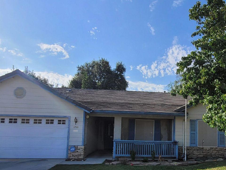 This home is located in North Creek Estate in NW Porterville. It is 3 bedrooms, 1 3/4 bath, approximately 1639 sq. ft. Nice open floor plan, the kitchen has lots of storage, oak cabinets and tile counter top, and large breakfast bar, There is a beautiful rock fireplace in the living room and a slider leading to the covered patio in the backyard. Vaulted ceilings in the living room and master bedroom, ceiling fans in all the rooms. The master bathroom has a large shower, double sinks and a large walk in closet. Just down the hall is the other two bedrooms and hall bathroom. Call today!!!