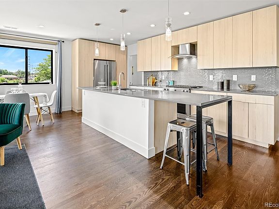 Beautiful Modern Attached (Half Duplex) Three Bedroom + Three Bath Home in West Colfax near Sloan's Lake! No HOA dues. Great layout for guests + home office. Professional new to the studs remodel in 2017 by Lucid Studios with rare Class 5 flat drywall and deep window sills. Once featured on HGTV! Light fills the main level living room and daylight lower level. Real hardwoods on main level and brand new carpet below, many upgraded dimmers. NEW ROOF in 2018. Customized epoxy finish floors in detached 2-car garage, complete with custom shelving. Private FENCED YARD for Pups, NEWER Trex Deck and Solar Offset via SunRun Solar Lease (~$52/mo). Walk 5 blocks to Sloan's Lake and only 3 minutes to Perry Station light rail (Meow Wolf is nearby, so great location for airbnb - verify use potential with city of Denver) - Enjoy nearby Alamo Draft House movies + Little Man Ice Cream Factory. Short drive to Trey Parker + Matt Stone's new Casa Bonita and 40 West Arts District. Seller is a licensed real estate broker in the state of Colorado. Seller will be conducting a 1031 Tax Exchange. Closing date is very flexible. Radon Mitigation already in place. Two smart RING camera motion lights included (side door and garage door, never used). Custom roller shades + all curtains included. All appliances and washer/dryer included, along with installed garage shelving for all your Colorado outdoor gear. Roof was upgraded to impact resistant shingles, which should save the buyer a bit on homeowners insurance.