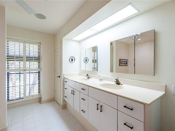 This attractive, well designed, 3BR/4BA home is perfectly situated on an oversized lot overlooking the 15th fairway in Beachview CC Estates. It has been meticulously maintained and features, two master suites, a travertine tile entrance, vaulted ceilings, a formal dining room, a whole house stereo system, oversized heated saltwater pool with southern exposure, impact resistant windows and doors, and a pavered driveway. The spacious elegant terrace offers a beautiful pool and deck area and panoramic views of the golf course. The oversized kitchen offers double ovens, a gas cooktop, breakfast table with views of the pool and golf course and a fabulous terrace, perfect for dining al fresco. With sunlight streaming in, open deck access from the living room, and a screened in porch, this home is in perfect harmony with the lush tropical vegetation that surrounds it. Lower level features a 4-car garage, generous storage space, and is elevator ready. Steps to deeded beach access.