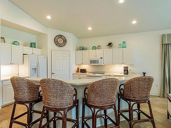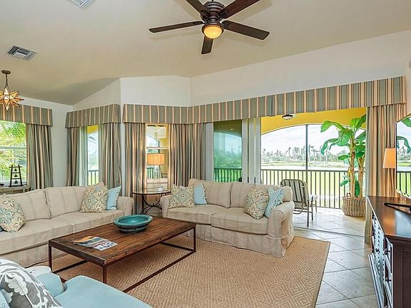 C.14033 Best long lake and golf course view in Hammock Bay! Professionally Decorated Second Floor Coach Home being offered turnkey with Custom Window Treatments, Wall Coverings, Tile on the Diagonal throughout the Living and wet areas plus a Private Elevator. The Custom Designer furniture with accessories are Included! Dramatic 12-foot Ceilings - Large Windows of Storm Resistant Glass provide lots of sun for this end unit. 2455 Square Feet include Great Room, Den/Office, 3 Large Bedrooms, Unlimited Storage, and 2 Car Garage. Large 34 foot Master Suite includes a Tray Ceiling, Dual Vanity, Private Commode, Walk in Shower & 3 Spacious California Closets. The Open Concept Culinary Kitchen offers White cabinets, with unlimited Solid Surface Counter Space and Breakfast Bar and Walk in Pantry. Both the Great Room and Master Suite open to spacious 24-foot Lanai for Sunsets. Recently Replaced A/C, Washer and Dryer. No CDD! Storm Resistant and Pet friendly, and Only 2 miles to the Marco Island Bridge & 20 minutes to Olde Naples. New shops and restaurants are a quick drive! 34114/34145