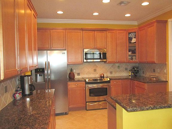Peaceful lakefront view with highly desired Savannah model floor plan. Truly move-in ready with beautiful wood kitchen cabinets with 42'' upper cabinets, granite countertops and tiled backsplash, stainless steel appliances, frontload high efficiency washer and dryer. High ceilings with crown moldings throughout and custom plantation shutters. Spacious master suite with tray ceiling, double walk-in closets, dual sinks, separate Jacuzzi tub and shower. Tray ceiling in living room with additional lighting. New Refrigerator and microwave mid 2015. All bedrooms had laminate flooring installed 10/2014. Gated community with pool, tennis and clubhouse.