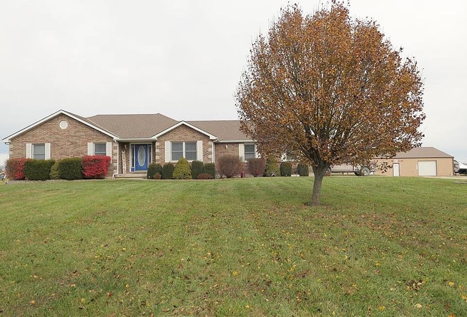 Beautiful Reverse 1.5 story home situated on 4.39 peaceful acres. Gleaming hardwoods thru out the main floor! Kitchen w/pantry, smooth top range, oak cabinets & island eating area! Great room w/gorgeous brick fireplace! Master Suite w/vaulted ceiling, walk-in closet & private bath! Massive Rec Room w/high ceilings and walkout! Bedrooms 2 & 3 w/immediate access to bath! Over-sized deck to enjoy country living! No maintenance all brick exterior! AWESOME 40x60 heated shop with concrete floor! Better Hurry!!