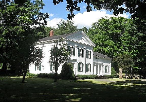 Inquiries call (917) 379-8511. Buyers' brokers okay. This one-of-a-kind, Federal-style historic retreat offers modern convenience and peaceful mountain views. Originally built by Burton Morss, a nineteenth century industrialist, The Morss Manor was carefully restored and updated in 2012. All new electric, spa bath and individual thermostats in every room are just a few of the touches that make this home so very special. It is the perfect location for year-round enjoyment and relaxation, just minutes from both Windham and Hunter Mountains. The property is private, and lushly landscaped, with a grove of old maples, thick zoysia grass lawns and a mix of newer plantings. The rear acreage boasts the biggest back yard in Greene County, has a captivating stream with its own little waterfall, and abuts watershed land that can never be developed. The front of the Manor looks at unbroken mountain vistas on land owned by New York City for its water supply, assuring a “forever wilderness”. A circular driveway leads to the distinguished main entry with covered porch, or you can continue to the attached, two-car garage at the rear of the house. Distinctive architectural details abound, including columned facades, two original fan windows, hand carved moldings and massive stone foundations. The new roof is in keeping with the original design, and the entire house has been outfitted with carefully installed fiberglass insulation. Many rooms feature working fireplaces, and the wood stove can warm the entire first floor. The freshly painted exterior and interior of the Manor invite you to move right in. Accented by dramatic details throughout, the first level of Morss Manor offers a living room with an oversized fireplace, hand-carved mantel, crown moldings and an antique brass chandelier. Formal front and rear parlors are separated by pocket doors, and there are unique moldings around each fireplace, ceiling, window, and door. Matching antique sconces complement the décor. A dine-in country kitchen and two bedrooms, along with two full baths and a mud room from the garage complete the first floor. One of the baths has a jetted tub and is the perfect setting for a relaxing spa afternoon. New carpeting has been installed throughout the first floor, over the original wide plank floors. The Manor’s second floor can be accessed by three separate stairways, and the west side was previously an in-law apartment, which can be used as a separate rental. There are six more bedrooms, a large living room/den, a kitchen, an exercise room, three bathrooms and storage area galore. The west entry also has a perfect room for storing skis and equipment after a day on the slopes. A full stairway leads to the enormous third floor attic, with its impressive, pegged, hand-hewn beams, wide plank floors, and views of beautiful mountainous terrain to the north and south. It can be used for storage, finished as multiple bedrooms, or converted to a vast entertainment area for family and guests.