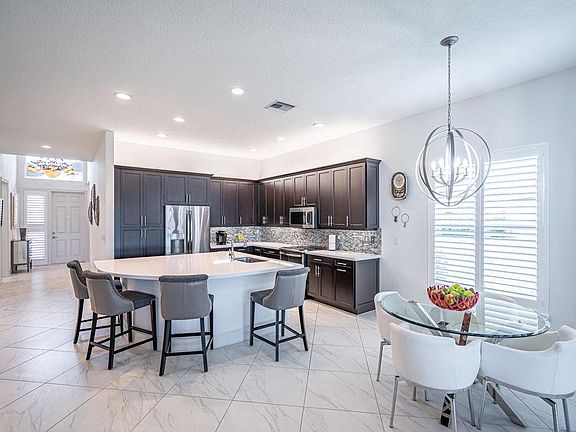 This rarely available highly upgraded Atlantica model was built as a full 3 bedroom home and is located on one of the largest private wide water lakefront lots with extensive landscaping in Valencia Bay. This home features large light rectified tile, neutral colors, numerous upgrades in kitchen & baths along with custom fitted closets, & a saltwater pool. This home is complete with impact glass.Enjoy all of the amenities of our 1 year new clubhouse complete with the Bay Cafe serving breakfast & lunch daily and dinner twice per week.