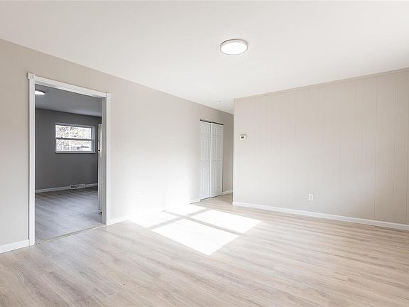 UPDATED INSIDE AND OUT! The spacious welcoming front porch leads to a sunny interior with new high-quality laminate and carpet, fresh paint, the bathroom vanity, mirror, lights and toilet, and new light fixtures throughout, all in 1/2023. The large, eat-in Kitchen received new stainless steel appliances and new countertops in 12/2022 and offers great cabinet space. The exterior of this home is maintenance free vinyl siding with wrapped fascias, soffits and gutters. Deck added off the Primary Bedroom and all interior doors have been replaced with white six panel doors and trim work redone. This home offers gas forced air heat, central air, attic fan, private well and septic with LLP field system. The attached garage is still available as a workshop and mower storage and a family or dining room was added. ABSOLUTELY MOVE-IN READY AND ALL ON A .41 ACRE LOT!