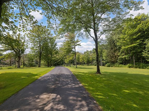 Probably the most wonderful, bucolic setting in Erie County! You will love the 23.17 acres (3 parcels in all) of landscaped lawn, pasture & lush wooded acreage. Follow the long paved drive to the spotless and exceptionally well-maintained ranch/log home. Vaulted ceilings grace almost every room and the log walls practically sparkle inside this custom designed & built home. A stone WBFP graces the oversized family room. The basement is partially finished with a rec room & additional full bath plus the attached garage is oversized & perfect for cars & toys. There's a barn with stalls & extra storage space (including a 2nd floor) plus an outbuilding for eqpt. & a small detached garage for the tractor. Also there's a fenced pasture, a larger fenced field & a bunch of wooded acreage that butts up to the North East township-owned land. One look & you'll realize that this house has been pristinely maintained throughout the years. Plus there's a brand spankin' new septic system to boot!