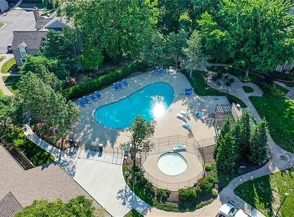 LOVE.LIVING.LOCAL at Lenexa's Limited Four Colonies! Enter into warm hardwood flooring, soaring ceilings, custom woodwork, and fantastic floor-to-ceiling brick fireplace while kitchen boasts granite countertops and newer painted cabinets. Huge master bedroom with private sitting room or office space! Enjoy lower living space with fourth bedroom, wet bar, stained concrete floor, full bath, and additional living room with second fireplace - walkout to the garage. This community is wonderfully located - centrally located with easy commute - featuring multiple pools, tennis, basketball, clubhouse and HOA-maintained exterior - even roof replacement! Recent roof and exterior paint complement the home, turn-key ready. Relax on the deck overlooking the mature tree-lined neighborhood, or take a morning stroll along the miles of paved trails in this community! Dry and well-maintained basement allows for ample storage space.