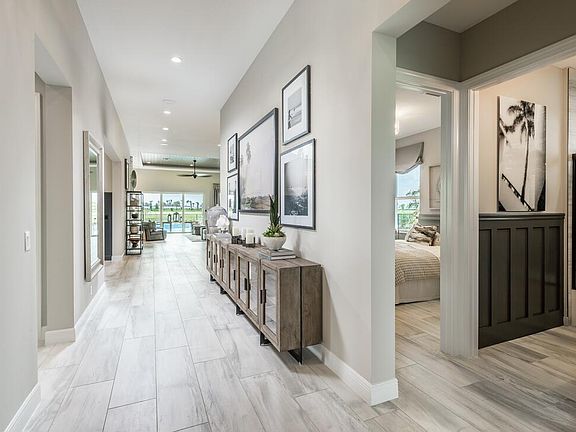 The Edmonton's welcoming covered entry and foyer flow into an inviting hallway with 12' ceilings revealing a bright and open floor plan. The well designed kitchen features a large center island with breakfast bar, plenty of counter and cabinet space and pantry. The expansive primary bedroom suite is highlighted by dual walk-in closets and deluxe primary bath with soaking tub and separate shower and private water closet. Formal dining room and private study. The large great room with 16' expansive sliders to rear covered lanai over looking the pool and spa area. House is under construction and will be completed approximately November/December 2023.