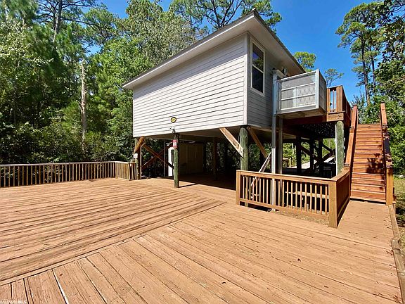 Experience coastal living in this immaculately kept bay front cottage on the tranquil shores of Bon Secour Bay. It boasts everything you need for the ultimate waterfront lifestyle. Elevate your experience w/a 46x48" marine grade 1000lb cargo lift. It adds convenience & testament to the attention to detail. A well designed gated area provides both security & style to the cargo lift. The dual staircases leading to the 40' deck create an impressive & welcoming entry. Handcrafted cabinetry throughout the cottage adds a touch of sophistication & charm to this well-designed & functional floor plan. The sunroom/sleeping porch features extra space & a wall of windows framing a direct & unobstructed bay view. It's an ideal spot to soak in the beauty of your surroundings. The 300' pier has power & water. The 23x25' dock is a perfect spot to fish, watch the marine life, relax & take in the views. The fish cleaning station makes preparing your catch convenient. Storm doors & window shutters offer peace of mind during inclement weather. The property is fortified w/riprap ensuring the shorelines integrity. A sandy beach area adds to its appeal. The 22x39' covered parking offers a hight clearance of 8.5' & a 3.5x8' storage closet. The additional 23x29' uncovered parking deck provides ample space for vehicles & water crafts. One mile from Bon Secour's Wildlife Refuge,Pine Beach Trail & Public Beach Access.Easy access to nature's wonders & the pristine shorelines along the Alabama Gulf Coast. For those who enjoy world-renowned golfing, shopping & dining you'll find yourself in close proximity to the amenities you desire. 3 minutes from Jesse's on The Bay.Boating enthusiasts can embark on adventures to LuLu's Homeport & once completed a quick boat ride to Tin Top on Bon Secour River along w/other waterfront attractions. This bay front retreat combines comfort, convenience & captivating views.Take a look & experience the coastal lifestyle you dream of.