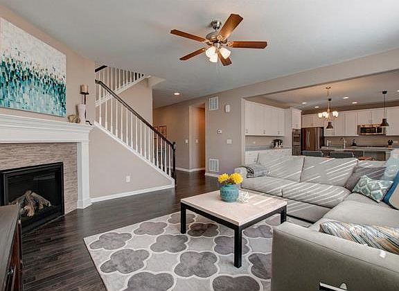 Welcome home to this one year old Hemingway model in the Meridian International Business Center area. The main floor features an open and sunny conceptwith the rare gourmet kitchen featuring an extra wall of cabinets and counter top space. Stainless appliances, granite tops, gas stove, and walk in pantry. Adjacent to kitchen & eating area is a sunroom for relaxation. The flex room, as you enter the home, is perfect for a office or quiet reading area. Spacious great room with gas fireplace is perfect for the cozy evenings at home. Upstairs you will find a large loft, master bedroom with 5-piece bath and an additional 3 bedrooms & full bath. The south facing back yard has a stamped concrete patio and is fenced. Lot does not back up to other homes ..... enjoy the openfeel to common area; subdivision backs to soccer fields & walking trails. Easy access to Lincoln to the south and E-470 to the north from Peoria.