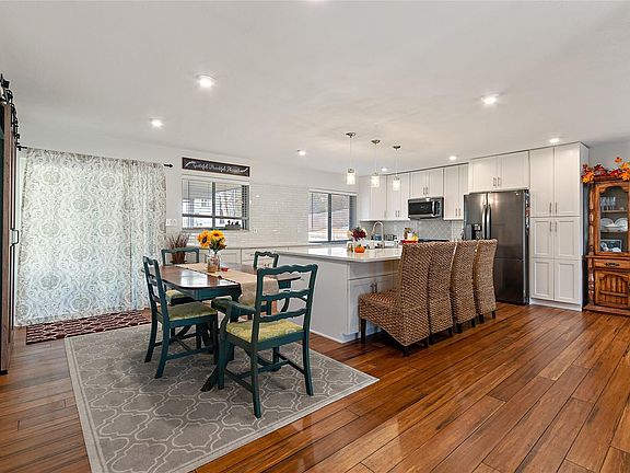 - Eating Space / Kitchen, Open Floor Plan, Kitchen Island, Master Bath, Master Suite, Updated, Window Coverings, Remodeled, Pantry, Utility Sink