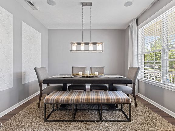Welcome to this amazing 4-bedroom plus loft, 2.5-bath home perfectly situated on a peaceful pond in the popular Deer Path community. Step inside to soaring raised ceilings and stylish LVP flooring throughout the main level. The spacious great room features a cozy electric inset fireplace and built-in ceiling speakers, flowing seamlessly into a stunning kitchen with a center island, custom pantry, and all appliances included. There's also a charming breakfast nook and a versatile front room that can serve as a formal dining area or a second living space-whichever suits your lifestyle! Upstairs, you'll love the fantastic owner's suite with a tray ceiling, luxury bath, and a custom walk-in closet, plus three additional bedrooms that offer plenty of space for family or guests. The laundry room upstairs adds convenience to your daily to do list. Enjoy outdoor living in the wonderful backyard, complete with a large patio, gazebo, fenced yard, and beautiful views of the pond. This home is located in the highly rated HSE school district and is just minutes from DEER CREEK, Hamilton Town Center, shopping, dining, and easy access to I-69.