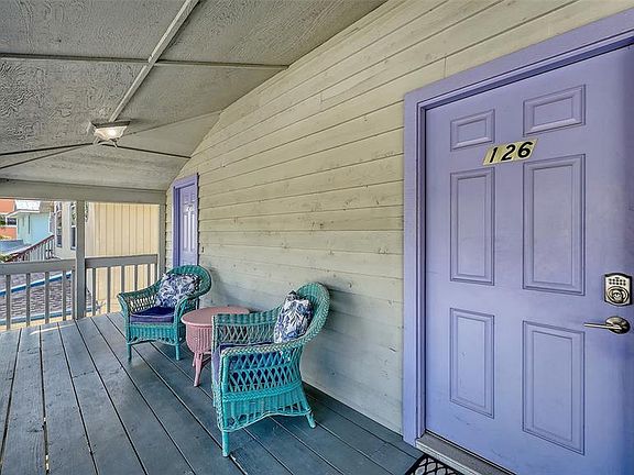 Just steps from vibrant Siesta Key Village and the world-famous Siesta Key Beach, this rustic coastal getaway offers an exceptional location with endless potential. Zoned RMF1, the property currently features two fully furnished, income-producing apartments ideal for daily, weekly, monthly, or annual rentals. Apartment 126, located on the second level, includes two spacious bedrooms, two bathrooms, a cozy eat-in kitchen, and a comfortable living room. A private balcony, accessible from both bedrooms, provides a peaceful outdoor space to enjoy refreshing coastal breezes. On the third level, Apartment 128 offers three light-filled bedrooms and an inviting living and dining area with views of the Gulf of Mexico. Vaulted wood-paneled ceilings add warmth and character, while the large private terrace creates the perfect setting for relaxing, entertaining, or simply soaking in the stunning surroundings. The property also includes a three-bay garage that accommodates six tandem-parked vehicles, an invaluable convenience in this prime location. On the ground level, a spacious patio and outdoor shower provide the ideal setup for rinsing off after a day at the beach. Whether you plan to continue using it as a successful rental property, remodel the existing structure, or build your dream coastal home, this unique offering presents a rare opportunity to own a piece of paradise in one of Florida’s most desirable coastal destinations.