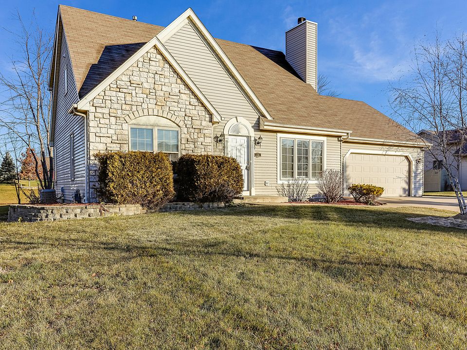 Beautiful Newer 3Bdr / 2 Bath Contemporary home in the Groves subdivision with a pond view! You will love the open floor plan here as the main floor features a large open living room with vaulted ceilings and large stone fireplace. Kitchen boats large island, granite countertops, newer stainless steal appliances, and dining area that opens to the back deck. First floor also features 2 bedrooms, updated full bath, and main floor laundry room. Upstairs features large loft and large master bedroom with updated master bath, walk-in closet, and balcony. Other recent updates include newer A/C unit, newer paint, carpet, and flooring throughout. Property also features full unfinished basement, 2-car attached garage, and great back deck and large lot on the pond! Welcome Home!