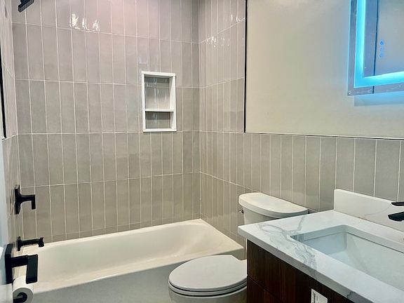 Be the first to live in this totally renovated first-floor rental with everything brand new from top to bottom! This bright and modern unit features brand new flooring, kitchen, bathroom, lighting, and finishes throughout. Enjoy the comfort of new AC split systems in every room, offering efficient, customizable climate control. Includes use of a private yard, one garage parking space, and one additional driveway space. Private basement storage provides plenty of room for your extras. Perfect for those seeking a move-in-ready home with style, convenience, and comfort. Located on a quiet street but close to local amenities, shopping, and transit. Nothing to do but move in and enjoy all the benefits of new construction in a classic setting. Don't miss out on this unique opportunity schedule a viewing today and make this stunning first-floor rental your next home!