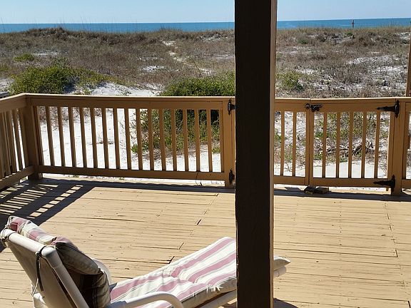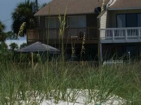 Great 3BR beachfront home in Mexico Beach. This townhouse is located well off of the busy Hwy 98 and is a great corner unit in a beachfront quadplex with no HOA dues. The downstairs is an open kitchen/dining/living area that opens up to a large deck overlooking the beach. Many updates have been done by the owner including a new roof in 2006. You'll love the master bedroom that opens up to the beach and has it's own private deck and master bath. Most furniture is negotiable.