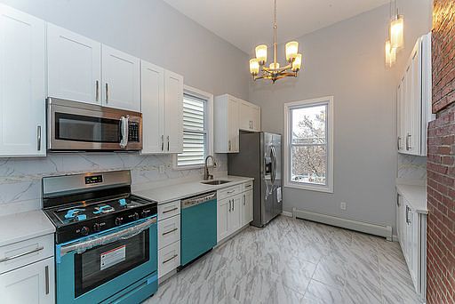 "New Construction" Rental: 4 Bedrooms, 1 Bathroom; complete with beautiful vaulted Ceilings in the Master Bedroom and Living-Dining area, bursting with Natural Sunlight, spacious Bedrooms with Southern; a fully equipped EIK w/ White Shaker Cabinets, Stainless Steel Appliances, Quartz Counter-Tops, custom designed exposed Brick Wall, Washer & Dryer Hookup in Unit, Recessed LED Lighting and gleaming Hardwood Floors throughout. Conveniently closing Transportation, Restaurants, Shops, Parks and approximately 30 minutes to NYC!