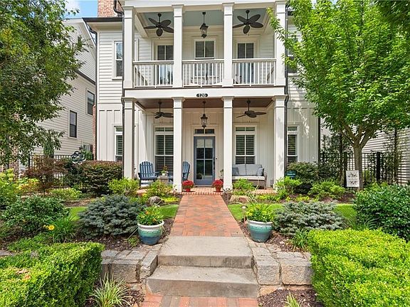 Here's the ultimate downtown Alpharetta living opportunity you’ve been waiting for! You’ll fall in love with this exquisite and spacious home loaded with over $100K of special features and upgrades, all designed to enhance your everyday life. The most charming double porches welcome you. Upon entering this stunning home, you’ll appreciate the upgraded rich wide-planked LVP flooring and the soaring 10 foot ceilings throughout the main floor. The two spaces located at the front of the home are perfect for elegant dinners and cozy fireside evenings. The study also does double duty with its specially designed built-in cabinet that serves as a tucked away desk/office. Also, the gracious dining room seats at least eight guests with easy access to a built-in butler’s pantry/bar that’s ready for service. The back half of the main floor offers a casual, open space for relaxed living and entertaining. Enjoy a beautiful, well-equipped kitchen with KitchenAid and GE Profile appliances including a double oven. There’s a perfect sunny breakfast area, just the place for enjoying morning coffee – all open to a very spacious and stylish great room, boasting a modern stone fireplace, flanked by stained floating shelving. This main floor is conveniently located steps from the 2-car garage, making unloading groceries a breeze. Complimenting this amazing space you’ll note other custom upgrades like a designer ceiling fan, island pendants, gold-tones hardware, upgraded sink faucet and other lovely light fixtures. And, don’t miss the smartly designed custom pantry and closet. The second floor does not disappoint with four spacious bedrooms, including a sumptuous primary suite complete with a fabulous sitting area and private screened porch. The primary suite features a stunning spa-like bath with simply the best amenities: oversized walk-in shower, dual granite topped vanities, free-standing slipper tub ready to spoil you, and two enormous fully custom designed closets that will simply wow you. There’s no home in this price point that offers a primary suite like this! The lovely secondary bedrooms have access to well-appointed baths, more custom closets and the second story porch with a view of downtown Alpharetta. One more (a third) floor awaits currently used as an inviting den with a full bath that is perfect for movie nights or game day. Another unique feature of this home is the two walk-in storage spaces located on the third level…there’s definitely no lack of storage here! The garage provides even more storage with its motorized lifts plus there’s a epoxy finished floor and wiring for an EV charger. The cu degras is the most enchanting porch and side patio with its lush professional landscaping, fun party lights strung all around, stepping stones and planters brimming with greenery. It’s one heavenly escape from the everyday hustle and bustle. This home offers the ultimate location, just a few minutes’ walk to all of the fun, action and excitement of downtown Alpharetta’s shopping, dining, and popular events like the Brew Moon Festival, Taste of Alpharetta and the Songwriter’s Festival…and so much more! And, the amazing Avalon is within walking distance too. If you’re looking for a home that is located in the middle of it all without compromising comfort and space, you’ve found your new home!