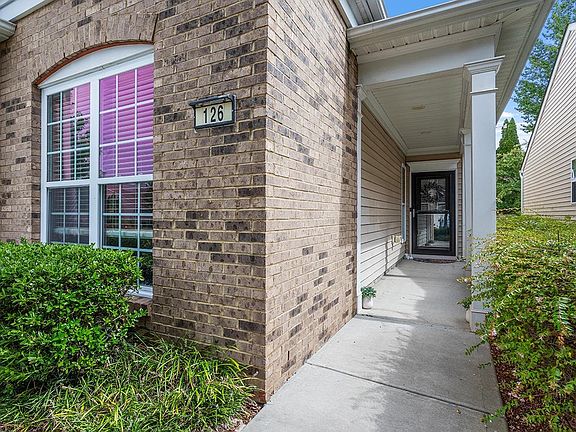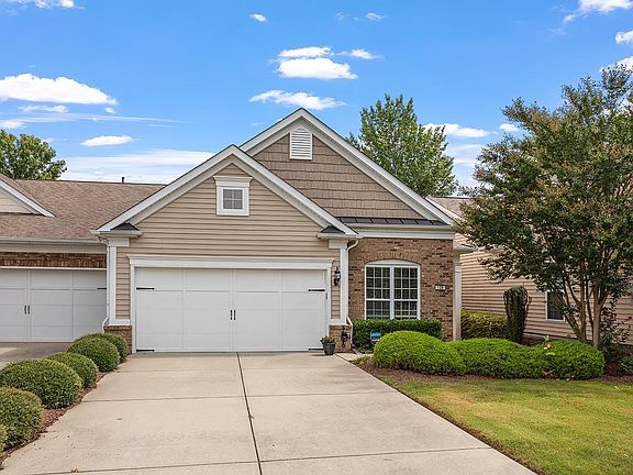 RARE opportunity to snap up a fabulous villa just a stone's throw from the clubhouse and amenities. This Muirfield model with private back yard features a brick front & extended driveway for extra parking. Wide plank LVP flooring throughout (no carpet) *private office or flex space *the sunny living room flows to the dining area and well-designed kitchen with 2 pantries, s.s. appliances, granite counters, breakfast bar, recessed lighting. Sliding doors off of the dining area open to a private covered patio and grilling area. Primary suite with WIC, granite counters with dual vanities. Off of the hallway is the laundry room (washer & dryer convey), guest room and full bath. Ceiling fans throughout. New gas water heater. Attic storage above the garage. Located in Cary's premier 55+ active adult community.