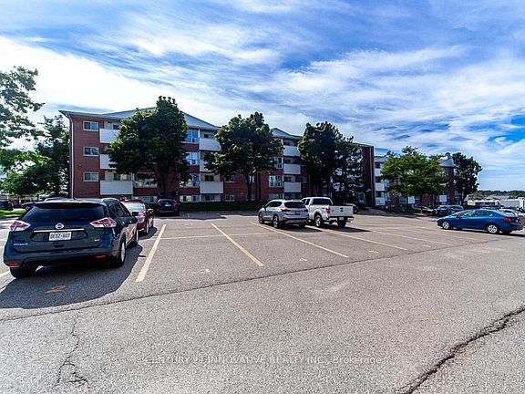 Welcome to Georgian Estates, fantastic opportunity for first-time buyers, investors or retirees! Bright, spacious 2 bedroom, 1.5 bathroom 925 sq ft suite with kitchen, 4 appliances included, laminate floors, decorative fireplace and accent wall. Primary bedroom has a walk- thru closet with a 2-piece ensuite and a 4 piece main bath just across the hall. Nice view from living room windows of Little lake. Convenient ground floor entrance to the suite is available without the use of stairs for anyone with mobility issues. The building is conveniently located near shopping, restaurants, entertainment and many services, easy access to HWY 400, and a short walk to Little Lake. Public transit stop on Bell Farm Road, walking distance to Georgian College and hospital. Well maintained building, quiet, clean and accessible. One assigned parking space is included. Common laundry in building with card payment system. On site cleaning staff, well managed building, elevator, pet friendly with a dedicated dog walking area.