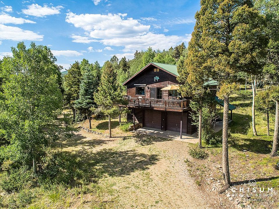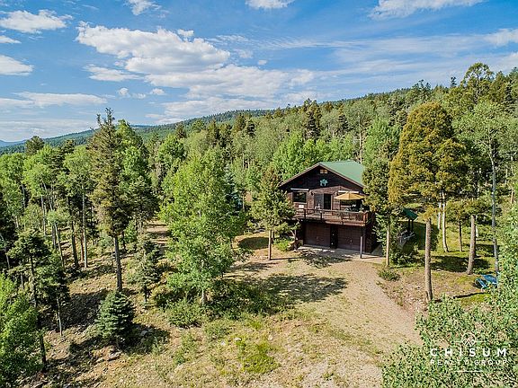 Wake up to the sunrise on your own 10.19 acre mountain retreat! This home is hidden from the road, with a long winding driveway that provides privacy uncommon in Angel Fire. As you reach the homesite, the expansive mountain and valley views will take your breath away. The 925 sq ft home was built as the initial residence with a larger home to come so septic and utility, and even building plans, are in place if you want to expand. The home is set up to be off-grid with a 1,000 gallon propane tank, propane generator with battery backup and an inverter. The home also has a private well, unique to Angel Fire, and a 1,000 gallon water storage to help with firefighting support. The first level of the home has a two car garage, laundry area, mechanical room and work area. The upstairs features a great room with big windows and big views, a large deck and one bedroom. The home was strategically setup to take advantage of the amazing views from almost every room. The property also has an oversized detached two car garage with plenty of work space and storage. Finally, the retreat has Deeded access (non-motorized) to Carson National Forest through the adjacent property. 126 Brazos Dr comes fully furnished and is one of the few properties within Angel Fire Resort that allows horses!