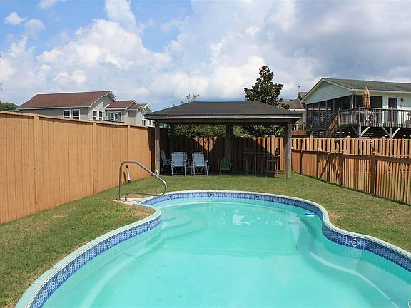 Fantastic waterfront living, this immaculately maintained Canal front home sits on the end of the canal on Dandy Inlet with a dock and 11 x 30 Private pool with lighted cabana. Modern contemporary decor, this home has an open floor plan and towering ceilings and beautiful bamboo flooring. New upper level added in 2005 features a master suite offering a loft sitting area, walk-in closet, master bath with Jacuzzi tub, double vanities, dual head walk-in shower and commode room. Mid level: Hall bath, 3 bedrooms including a queen master bedroom with bath. Kitchen has granite counter tops, stainless steel appliances, and gas cook top range. Large windows in the great room allow for abundant natural lighting, great place for entertaining. Ground level: Game room with w/ air hockey & foosball tables, sitting area, laundry room Relax on the outdoor deck or by the private pool, you can kayak, crab, fish, paddle board from the dock. Sellers have thought ahead and built an elevator shaft for a future elevator. Also enjoy the amenities of Colington Harbour, security, basketball court, and a marina with the sound access, playground, park, and boat ramp. Great weekly rental, primary or second home.
