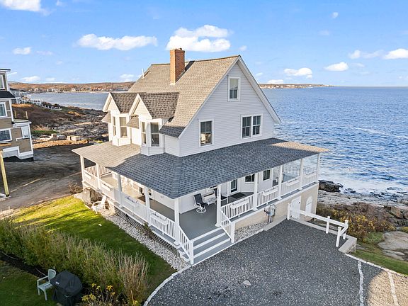Let the Atlantic Ocean wash your troubles away in this captivating oceanfront gem! This Nubble home is filled with New England charm and features the wrap-around, covered porch of your dreams! The ocean side of the porch has clear tempered glass under the rails to provide unobstructed wave watching! This beautifully maintained home has a large oceanfront living room with fireplace (propane) and dining area with French Doors to the porch for creating memorable times with family and friends. Kitchen has recently updated appliances and flooring, and there is also a full bath and laundry area on this level. Upstairs there are 4 bedrooms, all with ocean views, and a full bath. The kids will love the adorable 3rd floor offering a 5th ocean view bedroom and a bonus area for kids, yoga, or whatever! This house has many new upgrades which are detailed in disclosures, including a new roof and HVAC system with smart controls providing both heat and AC, and an irrigation system. Home sits high on a rocky bluff, out of the mapped flood zone.