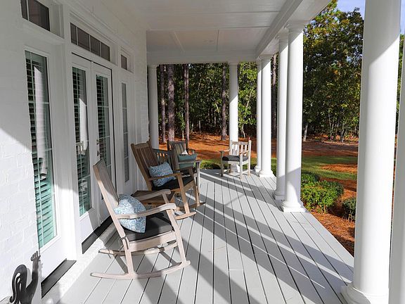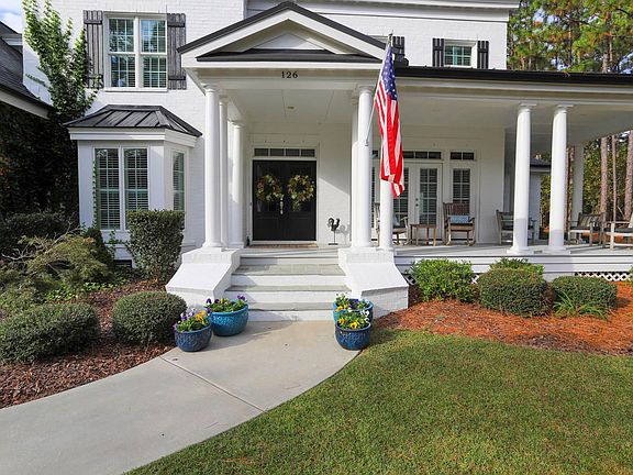 This stately, executive home is located in the beautiful, gated community of Forest Creek, one of the area's premier, private, golf course communities. Forest Creek's wide streets and picturesque community design lead you to beautiful homes, scenic, postcard-like golf views, members' first-class clubhouse, pool, fitness center and more.Upon arrival to 126 Brookfield, you will immediately notice the dream white brick exterior and large porches which define the words curb appeal and true southern charm. Once you step into the elegant entrance of this home, the dining room and formal living room then lead you to the living room and open concept, gourmet kitchen showcasing beautiful glass subway tiles and coordinating granite countertops. The soaring ceilings and windows in the living room