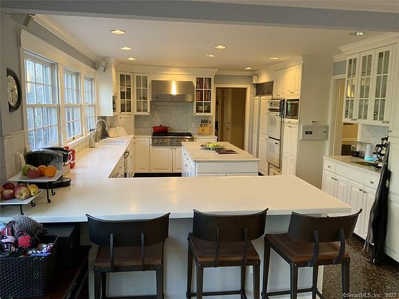 Just Exquisite Such a Beautiful and so very well maintained home with close look to detail and quality all around. Custom detail in every room starting with the remodeled kitchen featuring Custom Cabinets by Michael Walters, lovely Carrara Marble countertops, center isle, Viking gas cooktop, auto faucet, bar sink, sub zero refrigerator, 2 wall ovens. Family room is very comfortable w/built ins, gas fireplace, crown molding, bay window, recess lighting and wired for sound for your listening pleasure. There is a form din room w/pocket doors, chairrail and crown molding and the formal living room has hardwood floors, crown molding and a wood burning fpl w/custom mantel. Upstairs primary bedroom suite is so accomodating with a large walk in closet with beautiful custom cabinetry, and primary bathroom has a heated floor, rain showerhead, Toto toilets and a jetted tub with a view. The 2nd bedroom has its own bath and the other 2 bedrooms share a full bath. Relax in the backyard surrounded by private, open space, beautiful, well kept gardens, deck, heated gunite pool, gas firepit and natural beauty that surrounds you on tthe 2 acres. Other wonderful features are Newer roof, newer Marvin Windows, dual oil tanks, $10,000 heating system for ice removal on the roof, security and intercom system and so much more. Town of Middlebury has excellent school system, great restaurants, parks, ponds and is conveniently located to major highway and hospitals. Beautiful home, Wonderful Community