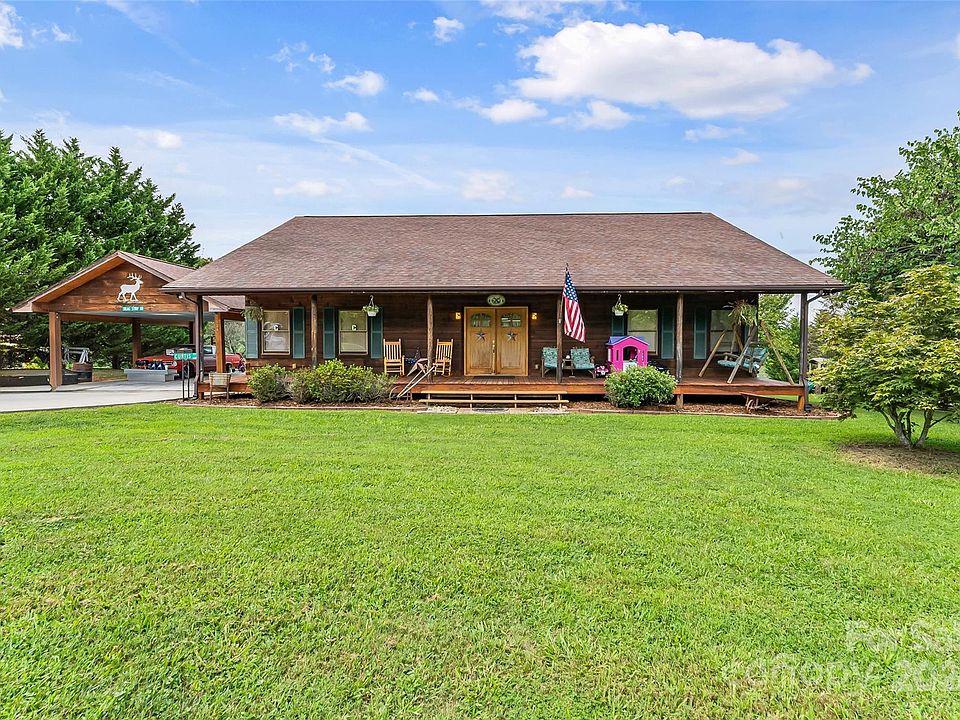 No city taxes! Welcome to this beautiful wood home, with loads of character, sitting on 2.32 acres. Beautiful green and private lot. This home has three spacious bedrooms and two full baths. Open concept kitchen, dinning and living space. The gas log fireplace in the living room sets the tone for this rustic home, cozy and inviting. This home has been very well maintained and all one level making for easy living.