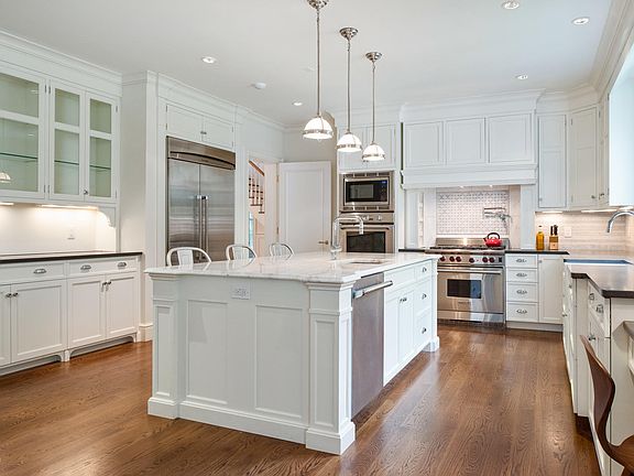 Move right in! Sitting on two private acres, this exquisite mid-country home welcomes you with 7 large bedrooms and plenty of space throughout. Built in 2012, the house has been impeccably appointed and maintained. You enter the first floor through a grand foyer with double height ceilings which give access to a formal living room and dining room as well as a large first-floor bedroom with an en-suite full bath. The over-sized kitchen boasts top-of-the-line appliances and plenty of counter space for even the most prolific chefs and provides easy access to the back porch/deck. The family room off of the kitchen provides privacy and separation of spaces.