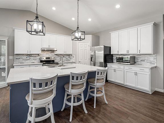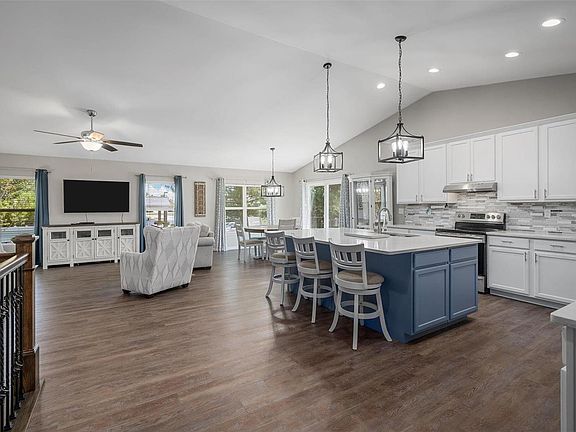 - Dining/Living Room Combo, Kitchen/Dining Room Combo, Kitchen Island, Eat-in Kitchen, Pantry, Solid Surface Countertop(s), Open Floorplan, Vaulted Ceiling(s)