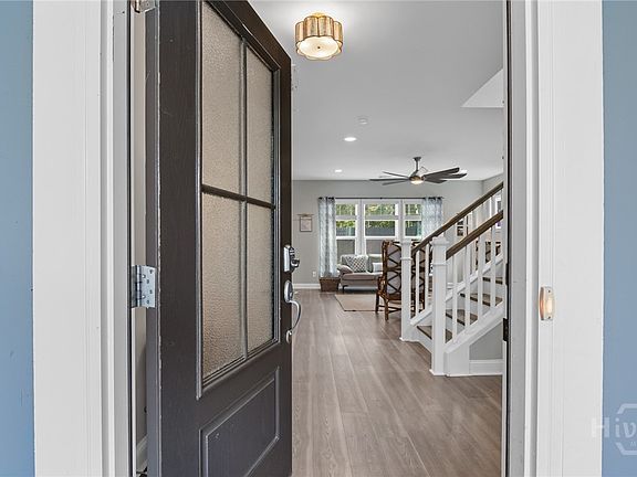 Welcome to 126 Canter Court! This stunning home exudes Southern charm and offers a 5% assumable loan—available to any buyer! Inside, a flex front room serves perfectly as an office or guest bedroom. The open-concept living area is filled with natural light and flows into a gourmet kitchen with quartz counters, white cabinetry, a large island, and stainless steel appliances. Upgraded lighting, wood stair treads, and upgraded flooring complete the first floor. Step out to a screened-in porch and a fenced backyard oasis with low-maintenance artificial turf, pavers, and lush landscaping. The garage includes a heating/cooling unit, epoxy flooring, and an EV charger. Upstairs features a spacious loft, a dreamy primary suite with a walk-in closet, dual vanities, and a walk-in shower, plus two additional bedrooms, a full bath, and a laundry room with built-in cabinets. Located near Isle of Hope Marina and the Shops at Sandfly—just 15 minutes from downtown—your ideal coastal lifestyle awaits!