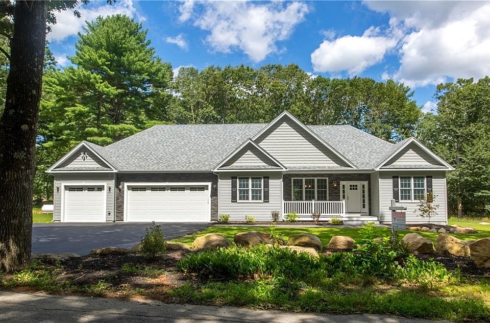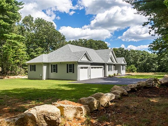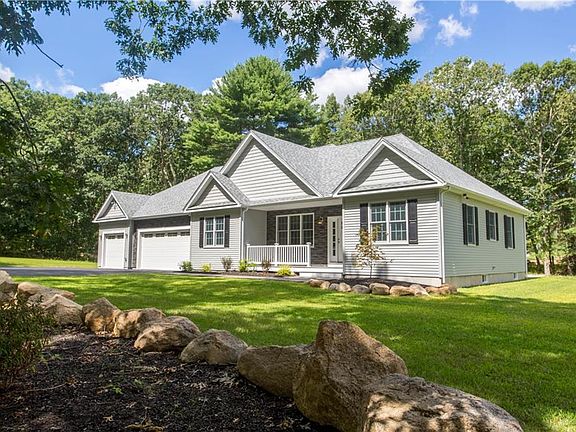 Welcome to 126 Carrs Pond Rd. A brand new, 3-4 bed, 2.5 bath ranch on 1.9 acres in a private wooded setting in West Greenwich. Enjoy a lofted open floor plan with an eat in kitchen leading to a wonderful vaulted living room and formal dining. Entering from the garage, find a custom drop zone with bench and hooks, leading to a powder room and a perfect front office to work from home. Discover a walk in pantry just off the kitchen and a dedicated laundry room with it's own sink. Down the hall leads to a beautiful and private master suite with walk in closet, lovely master bath, tile shower, free standing soaking tub and dual vanity. The East side of the home holds two guest bedrooms and a 2nd full bath. Other features include a covered back porch, concrete patio, an oversized 3 car garage, exterior access to a large basement for ample storage space and or expansion possibilities. Quality construction in a convenient and serene location, located directly across from state protected, Carrs Pond, with hiking trails that lead to the Big River Preserve. Under 5 minutes to 95 N&S, Center of New England, and East Greenwich.